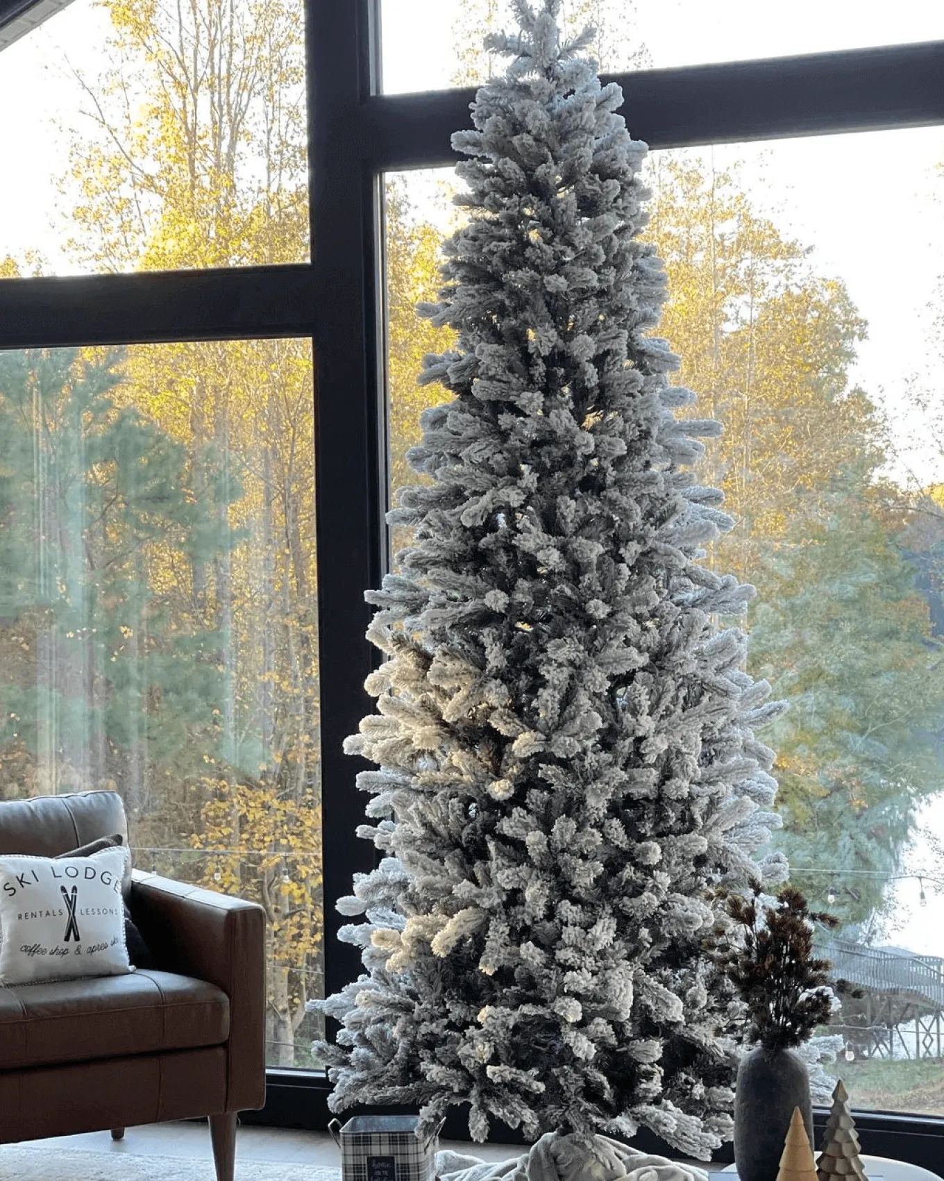 King Of Christmas 10' King Flock® Slim Artificial Christmas Tree With 1000 Warm White LED Lights- Realistic|Slim