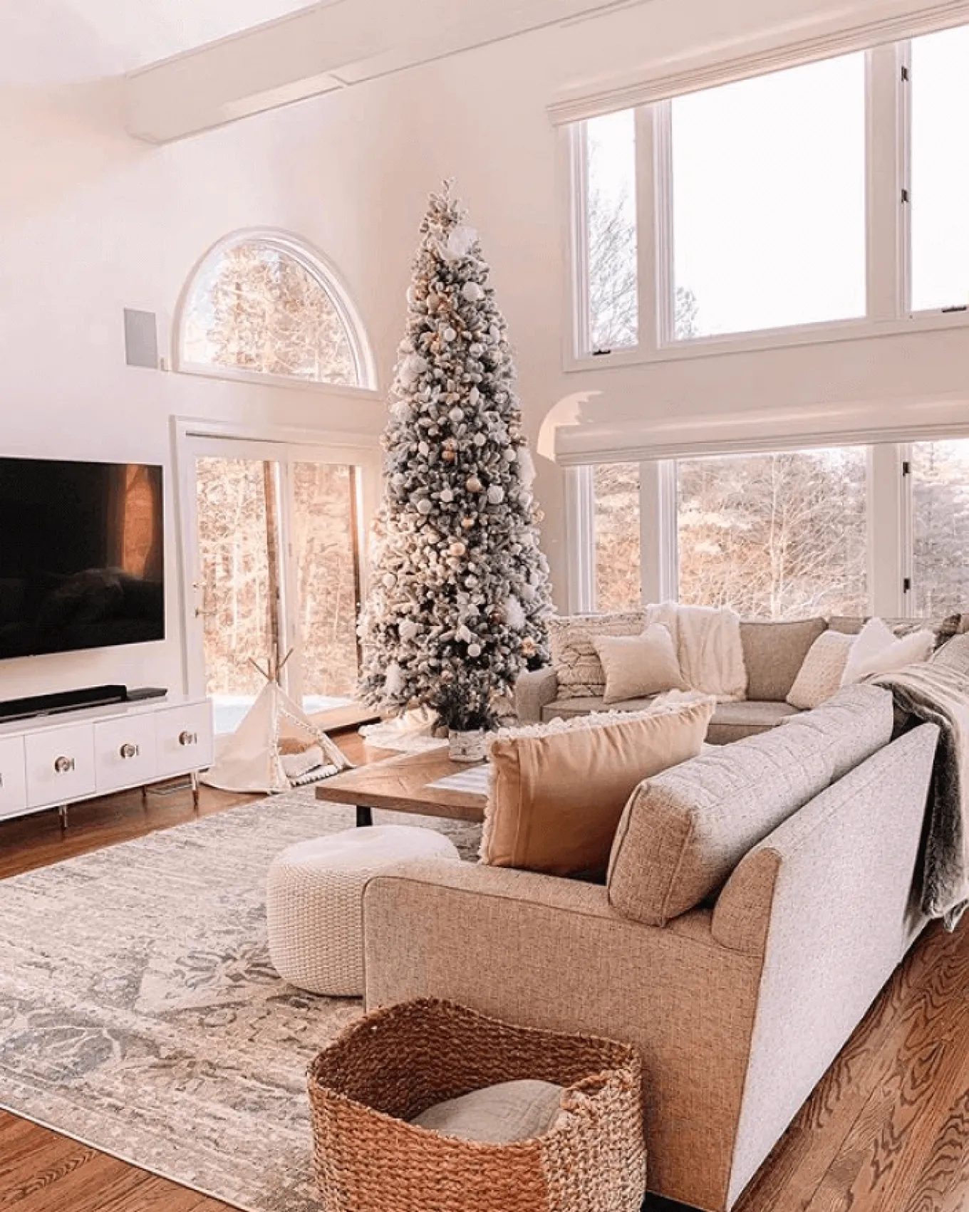 King Of Christmas 10′ King Flock® Slim Artificial Christmas Tree With 1000 Warm White LED Lights- Realistic|Slim
