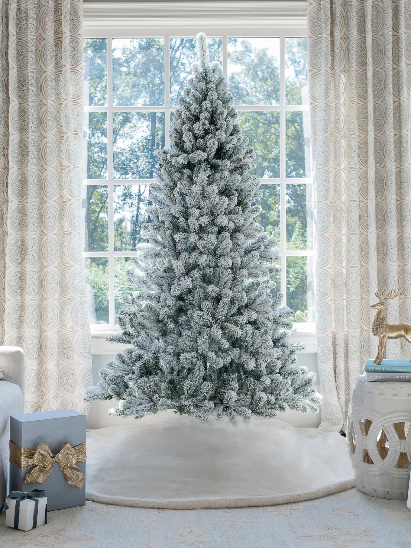 Capture the desirable essence of a white Christmas with the mesmerizing Prince Flock. Our handcrafted masterpiece brilliantly mimics the frosted, natural beauty of a Subalpine Fir. Adorn your holiday space with the allure of the Rocky Mountains, as each tree is designed to mirror the natural form, delicate needles, and serene white frosting that characterize the region. Our artisans have paid close attention to every detail, delivering an enduring hallmark centerpiece. Whether standing tall and proud in your living room or nestled snugly in your foyer, the Prince Flock will be the focal point of your holiday memories.