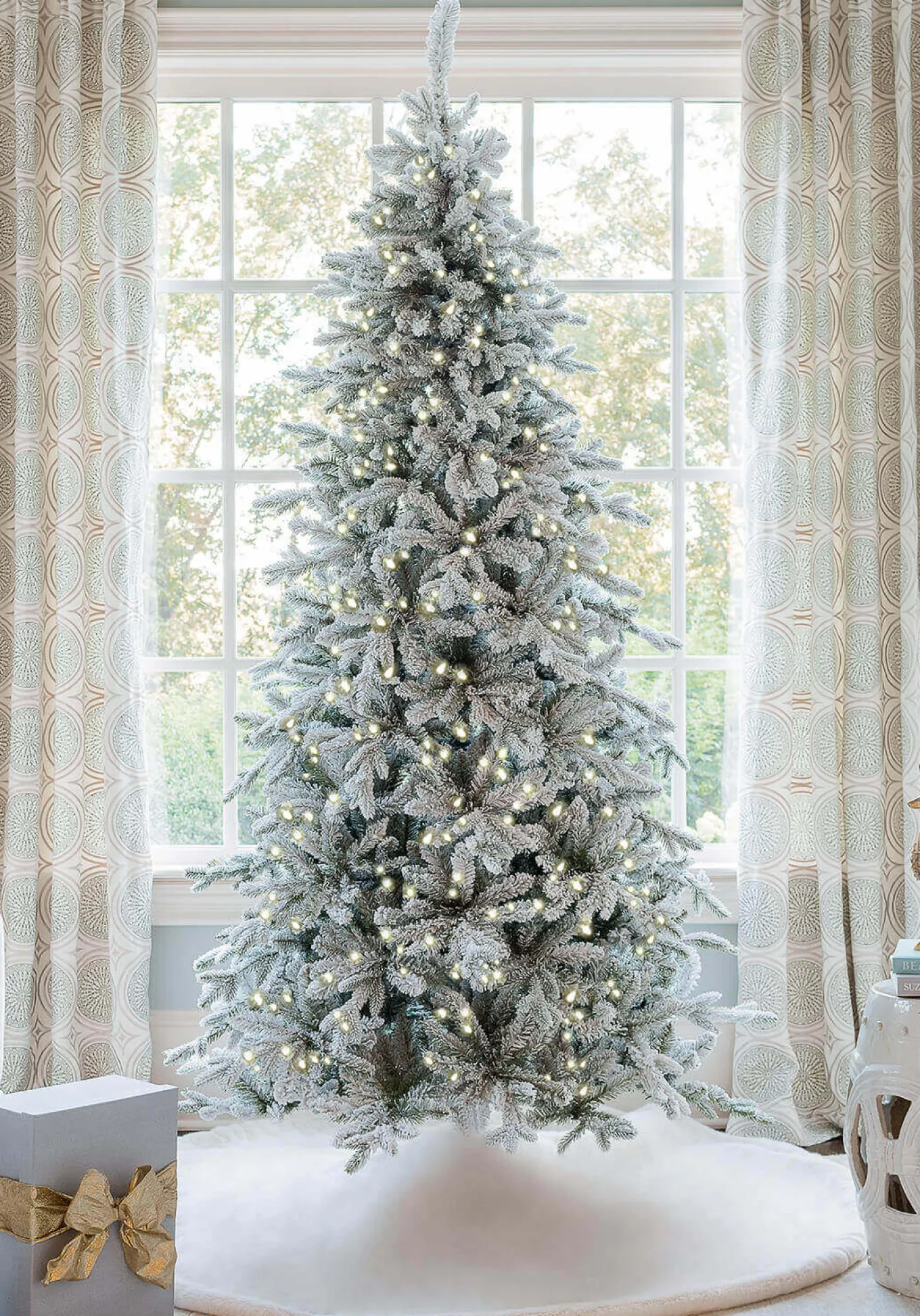 Create a magical holiday backdrop with the stunning Queen Flock. Envision a serene winter wonderland brought to life within the cozy confines of your living room. The Queen Flock is an ideal choice for those who cherish tradition with a hint of authentic elegance, featuring a lifelike flocked appearance that brings the enchanted look of fresh snowfall indoors. Each tree is carefully handcrafted, designed to mirror the majestic Alpine Fir native to the lush forests of Washington State. The Queen Flock – where memories are made and stories unfold under the gentle glimmer of holiday lights.