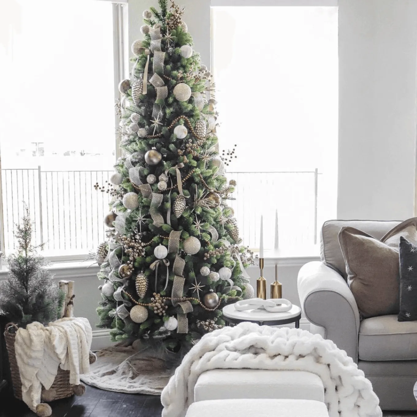 King Of Christmas 10′ Royal Fir Slim Artificial Christmas Tree With 1100 Warm White & Multi-Color LED Lights- Realistic|Slim