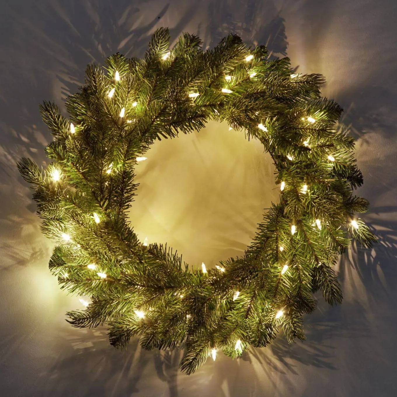 King Of Christmas 24″ Cypress Spruce Wreath With Warm White LED Lights (Battery Operated)- Wreaths|Green