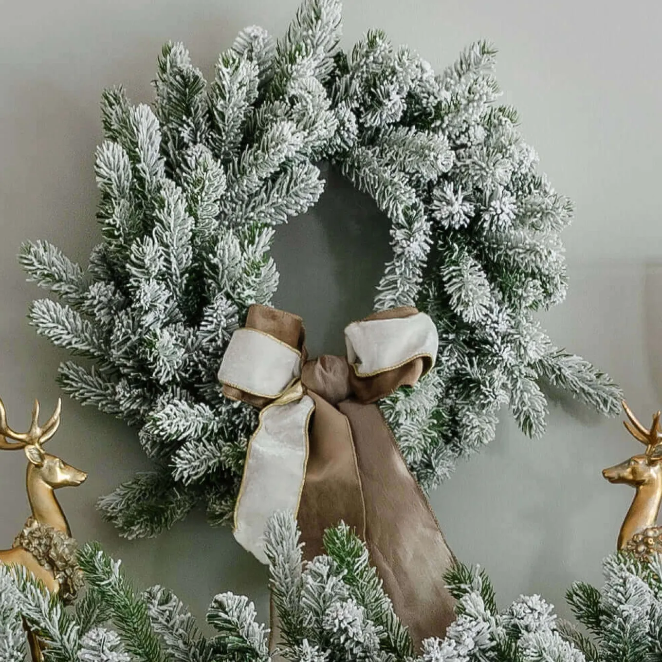 Your winter wonderland collection shouldn’t just end at your tree. Bring the enchantment of a dreamy white forest right into your living room, while decorating this holiday season. Composed of the same realistic tips and snow-covered branches, as the King Flock Tree, our King Flock Wreath will not disappoint with its effortless and quick shaping process.
