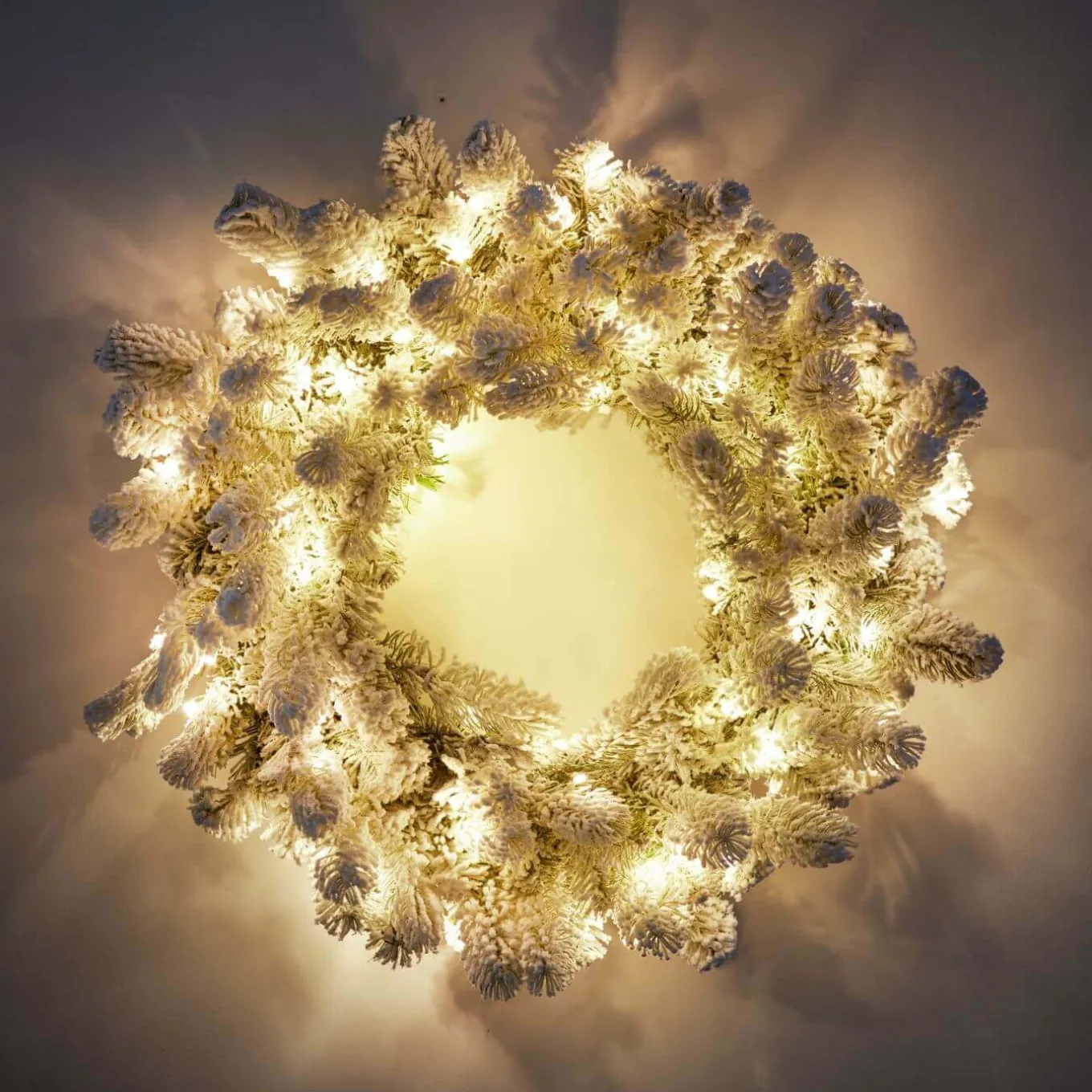 King Of Christmas 24″ King Flock® Wreath With Warm White LED Lights (Battery Operated)- Wreaths|Flocked