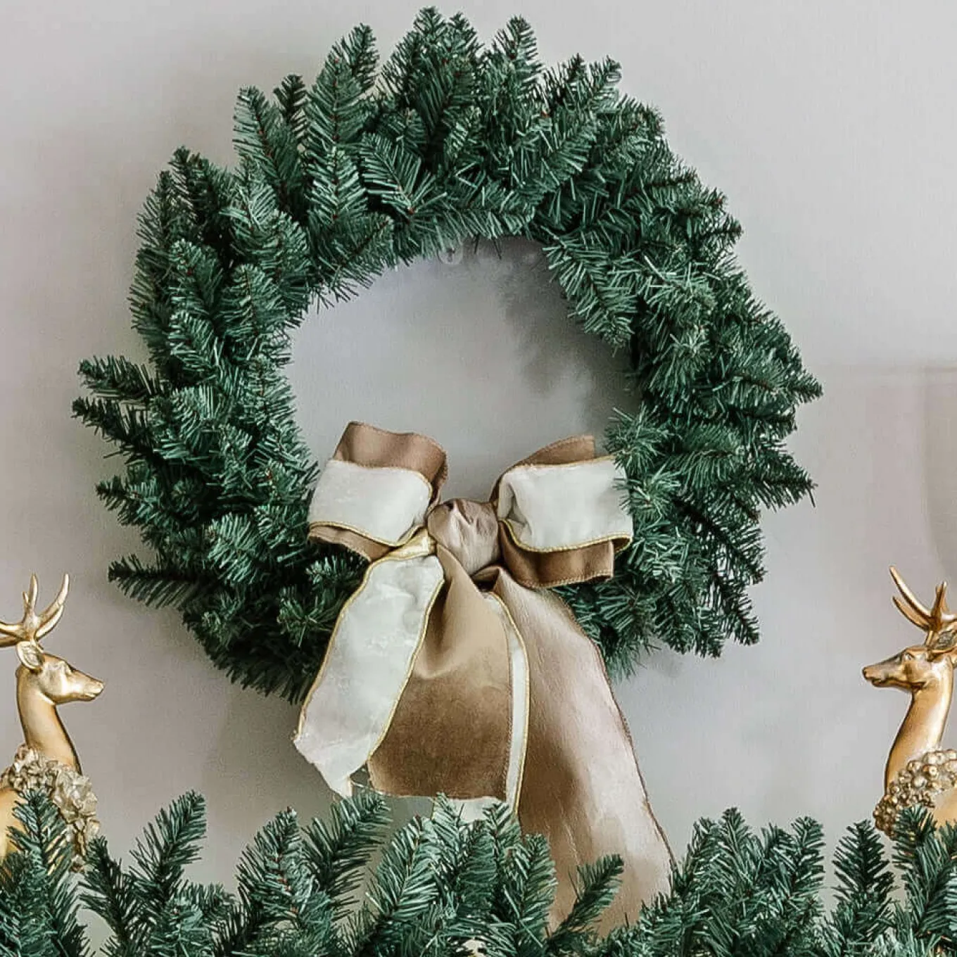 King Of Christmas 24″ Royal Fir Wreath With Warm White LED Lights (Battery Operated)- Wreaths|Green