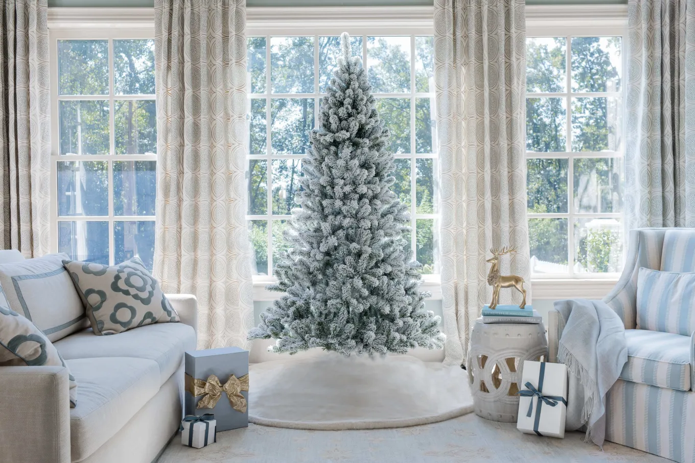 Capture the desirable essence of a white Christmas with the mesmerizing Prince Flock. Our handcrafted masterpiece brilliantly mimics the frosted, natural beauty of a Subalpine Fir. Adorn your holiday space with the allure of the Rocky Mountains, as each tree is designed to mirror the natural form, delicate needles, and serene white frosting that characterize the region. Our artisans have paid close attention to every detail, delivering an enduring hallmark centerpiece. Whether standing tall and proud in your living room or nestled snugly in your foyer, the Prince Flock will be the focal point of your holiday memories.