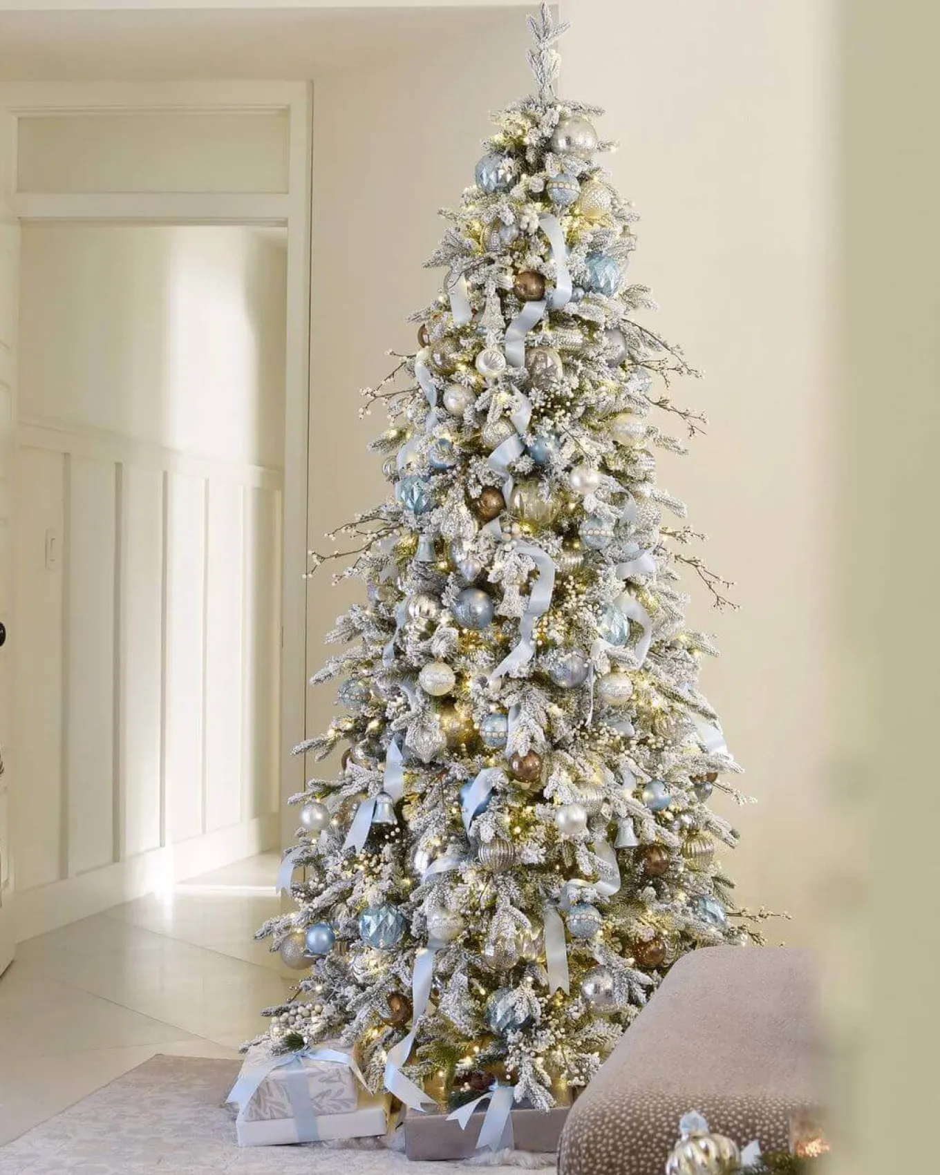 Create a magical holiday backdrop with the stunning Queen Flock. Envision a serene winter wonderland brought to life within the cozy confines of your living room. The Queen Flock is an ideal choice for those who cherish tradition with a hint of authentic elegance, featuring a lifelike flocked appearance that brings the enchanted look of fresh snowfall indoors. Each tree is carefully handcrafted, designed to mirror the majestic Alpine Fir native to the lush forests of Washington State. The Queen Flock – where memories are made and stories unfold under the gentle glimmer of holiday lights.