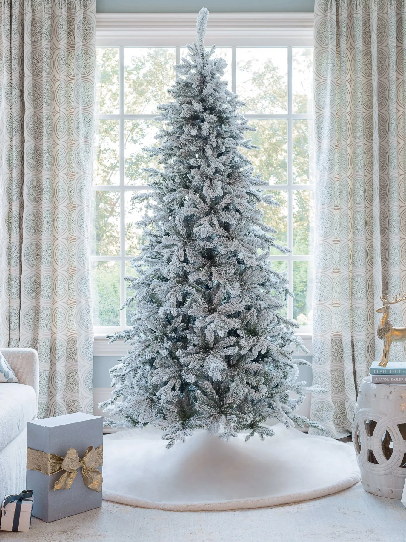 King Of Christmas 9′ Queen Flock® Slim Artificial Christmas Tree Unlit- Realistic|Slim