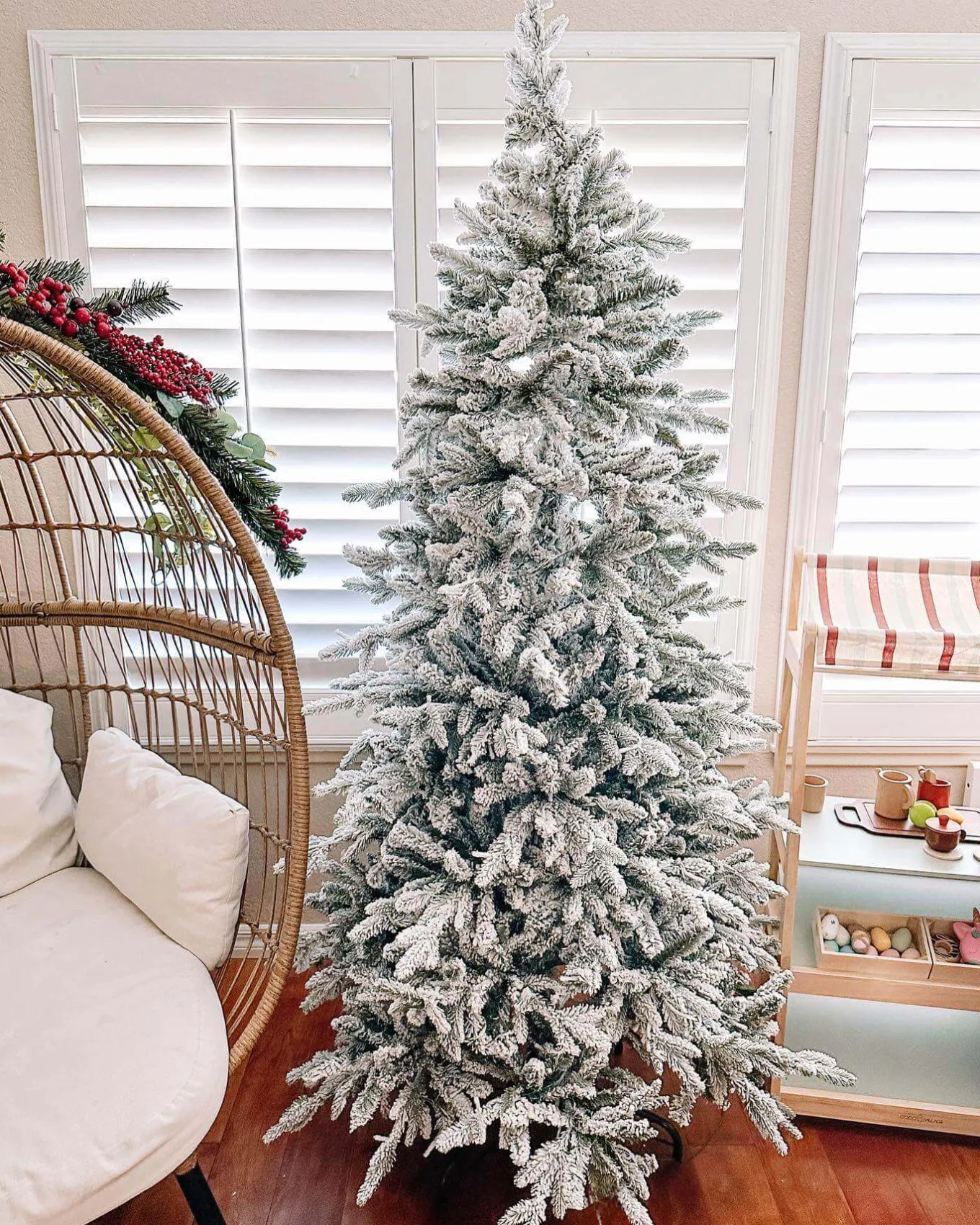 Create a magical holiday backdrop with the stunning Queen Flock. Envision a serene winter wonderland brought to life within the cozy confines of your living room. The Queen Flock is an ideal choice for those who cherish tradition with a hint of authentic elegance, featuring a lifelike flocked appearance that brings the enchanted look of fresh snowfall indoors. Each tree is carefully handcrafted, designed to mirror the majestic Alpine Fir native to the lush forests of Washington State. The Queen Flock – where memories are made and stories unfold under the gentle glimmer of holiday lights.