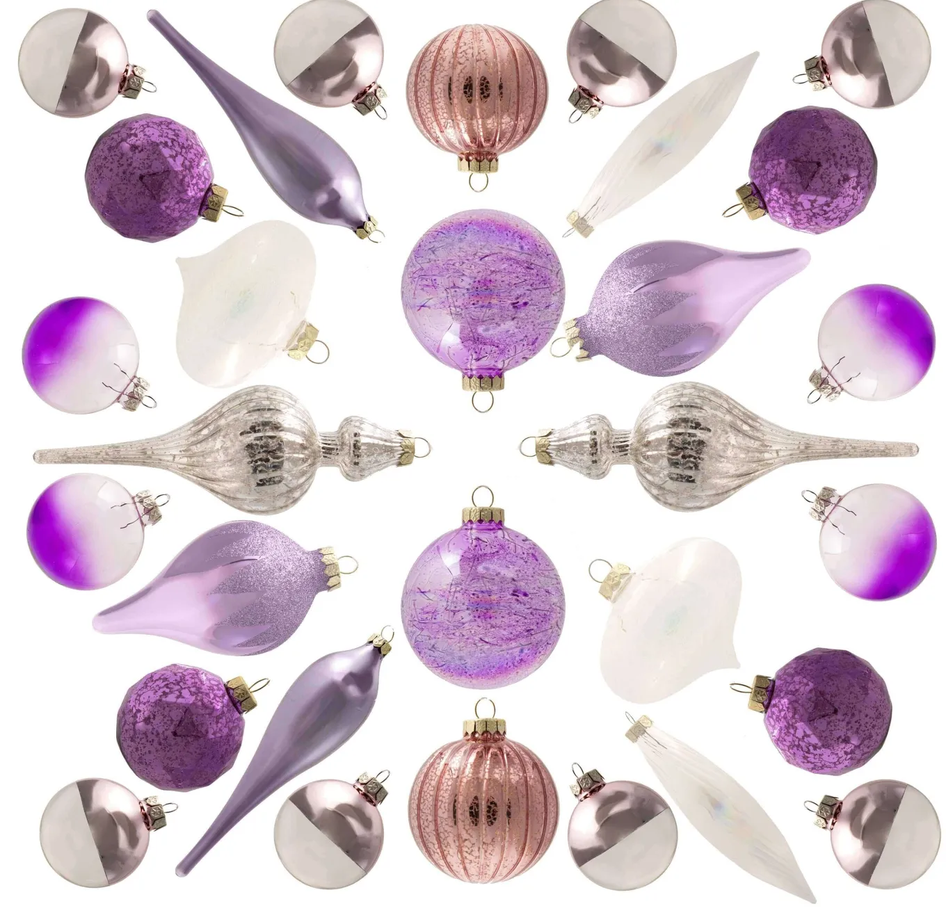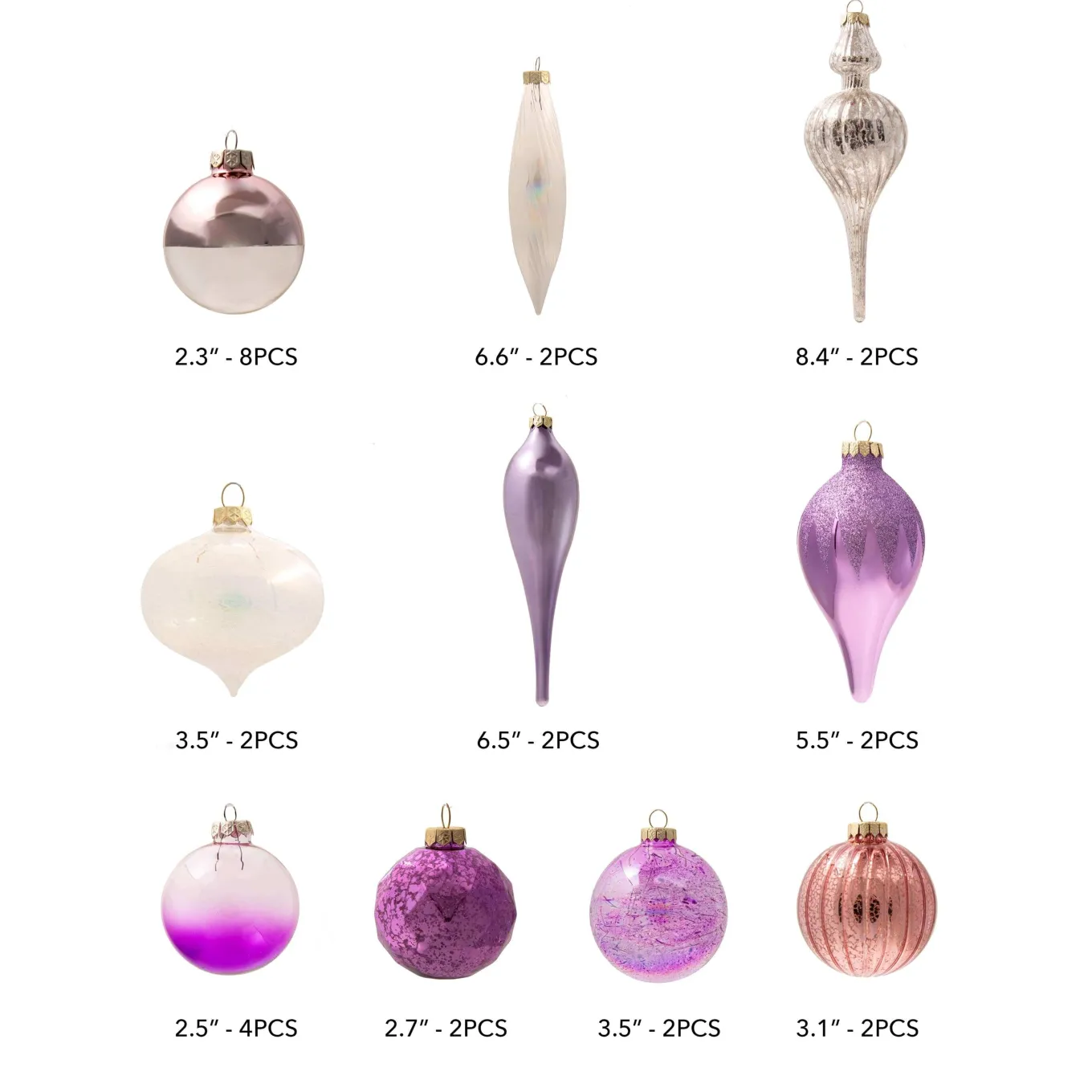 King Of Christmas Sweet 30-Piece Glass Ornament Set (Pink – Purple) Limited Edition- Ornaments|30 Pack