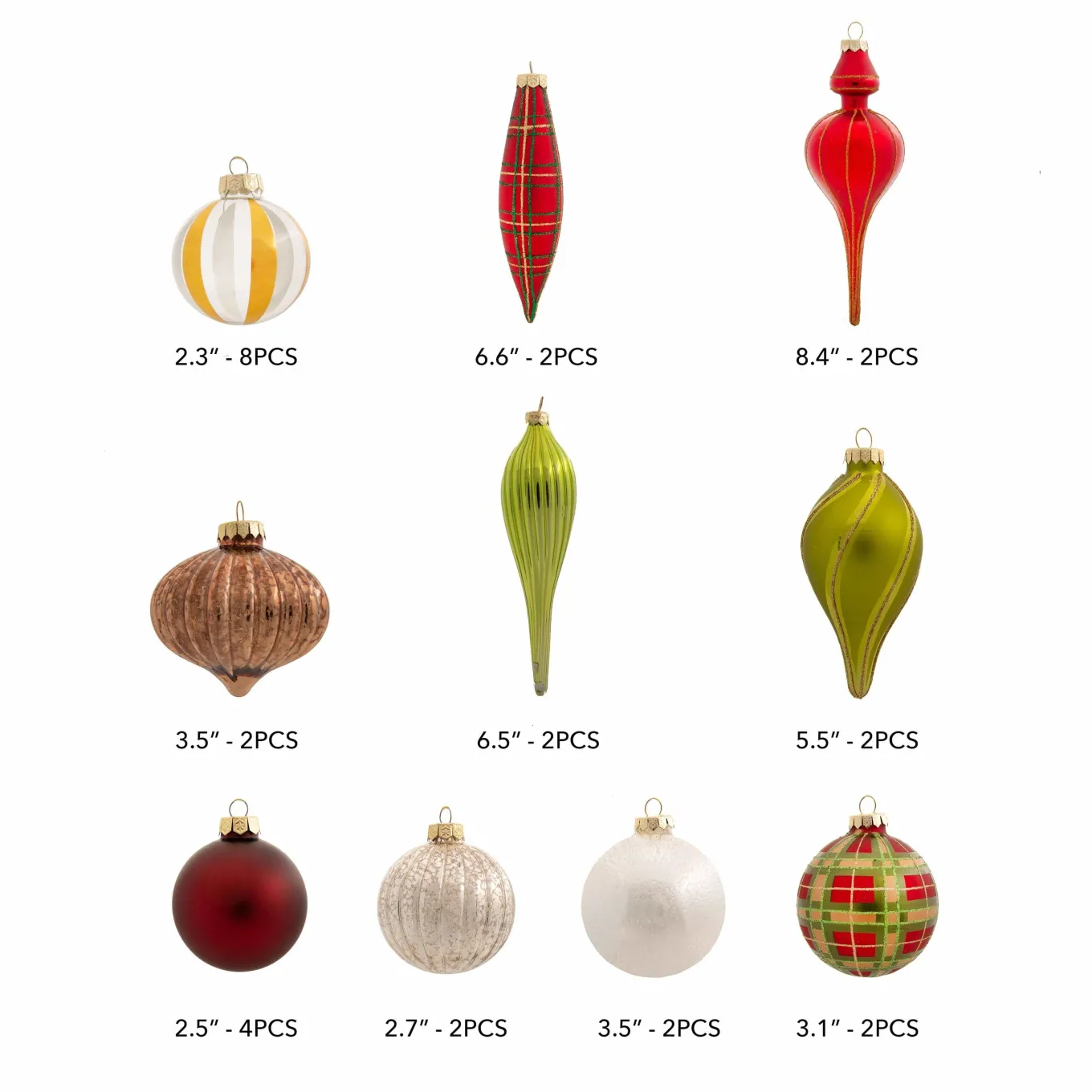 King Of Christmas Traditional 30-Piece Glass Ornament Set (Red – Green) Limited Edition- 30 Pack|Ornaments
